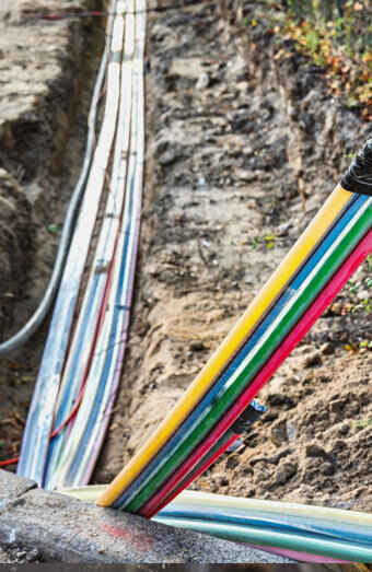 Complete installation of underground service cables from network pillar or pit to new properties, including trenching, conduit installation, and proper terminations.
